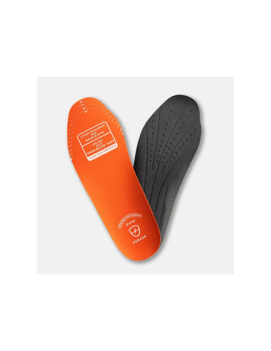 Semelles amovibles P-Elec conçues pour les chaussures de la gamme Parade Electric comme Evolt Echarg et Emonza. Elles garantissent le maintien des propriétés isolantes contre les risques de chocs électriques tout en offrant confort et hygiène grâce à une structure respirante antibactérienne légère et résistante. Disponibles en différentes tailles découpables pour s’adapter parfaitement aux chaussures.
