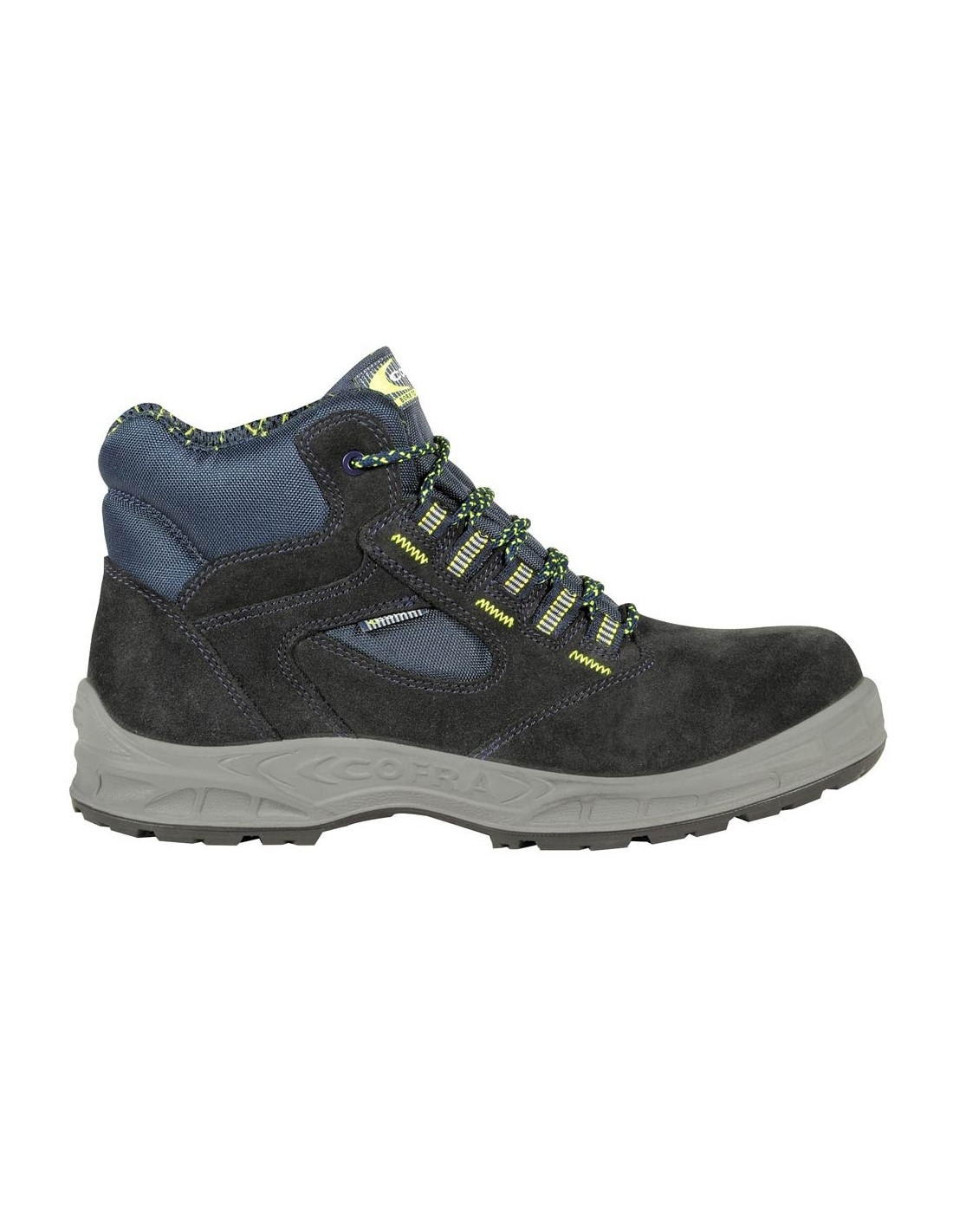 Les chaussures de sécurité Les Mans Blue sont hautes et conçues pour l'hiver, elles font partie de la ligne COFRA GROUND. L'embout n'est pas en métal mais résiste jusqu'à 200J, la tige est en cuir suédé hydrofuge et est respirante, tout comme la doublure interne et externe. La semelle est en polyuréthane tandis que la lame non métallique est en ATP PLATE.