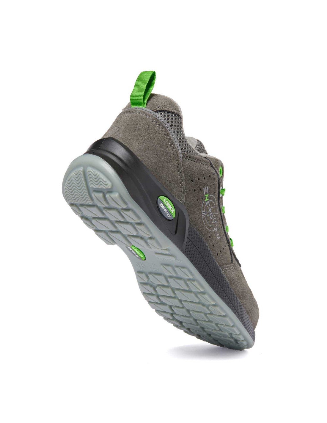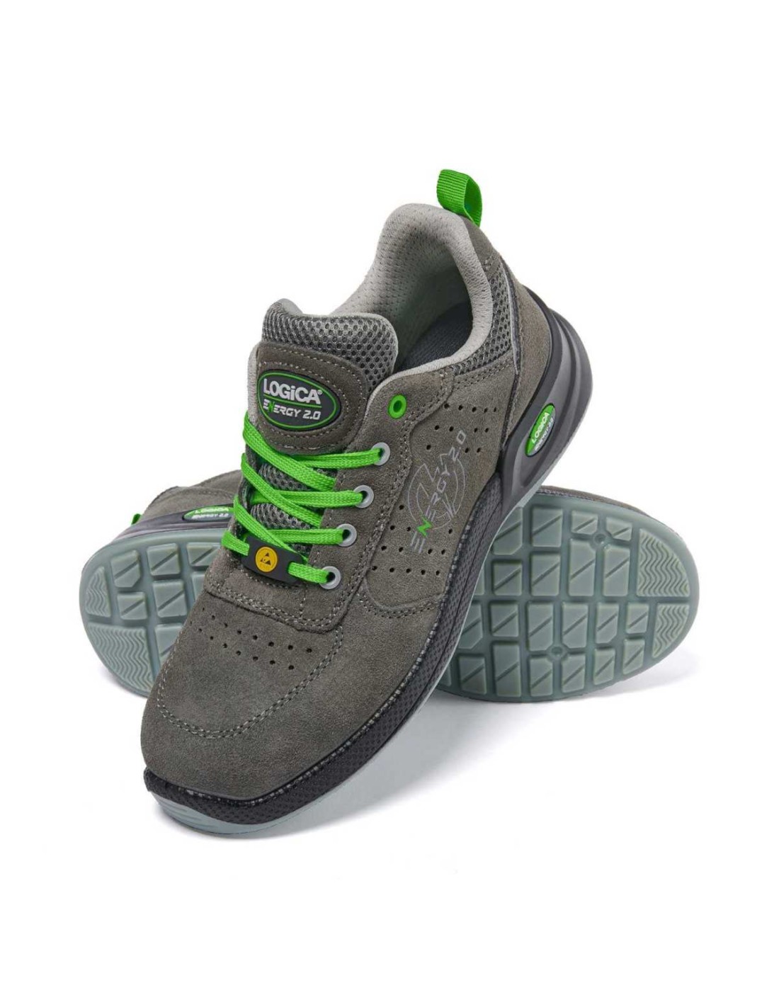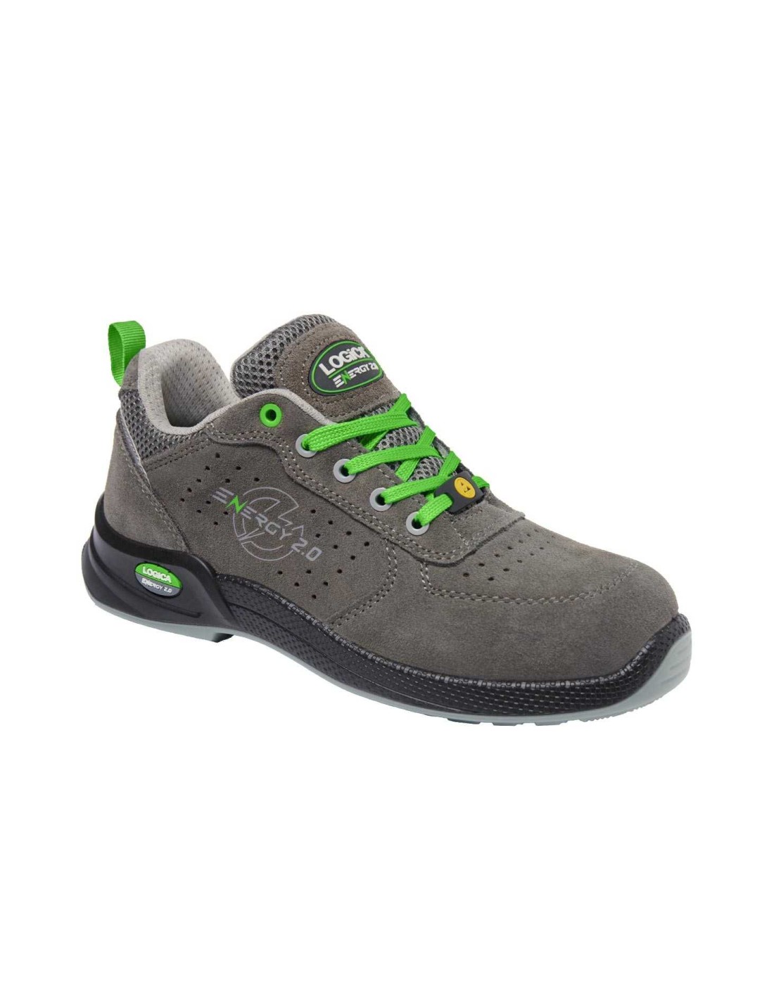 Chaussures de sécurité basses Metalfree Oasi de marque Logica avec tige en cuir suédé doublure en maille Air Mesh respirante semelle en polyuréthane bi densité semelle intérieure en mousse Memory douce préformée amovible antistatique embout en composite plaque non métallique L protection ® flexible et légère Normes S1PS FO SR ESD