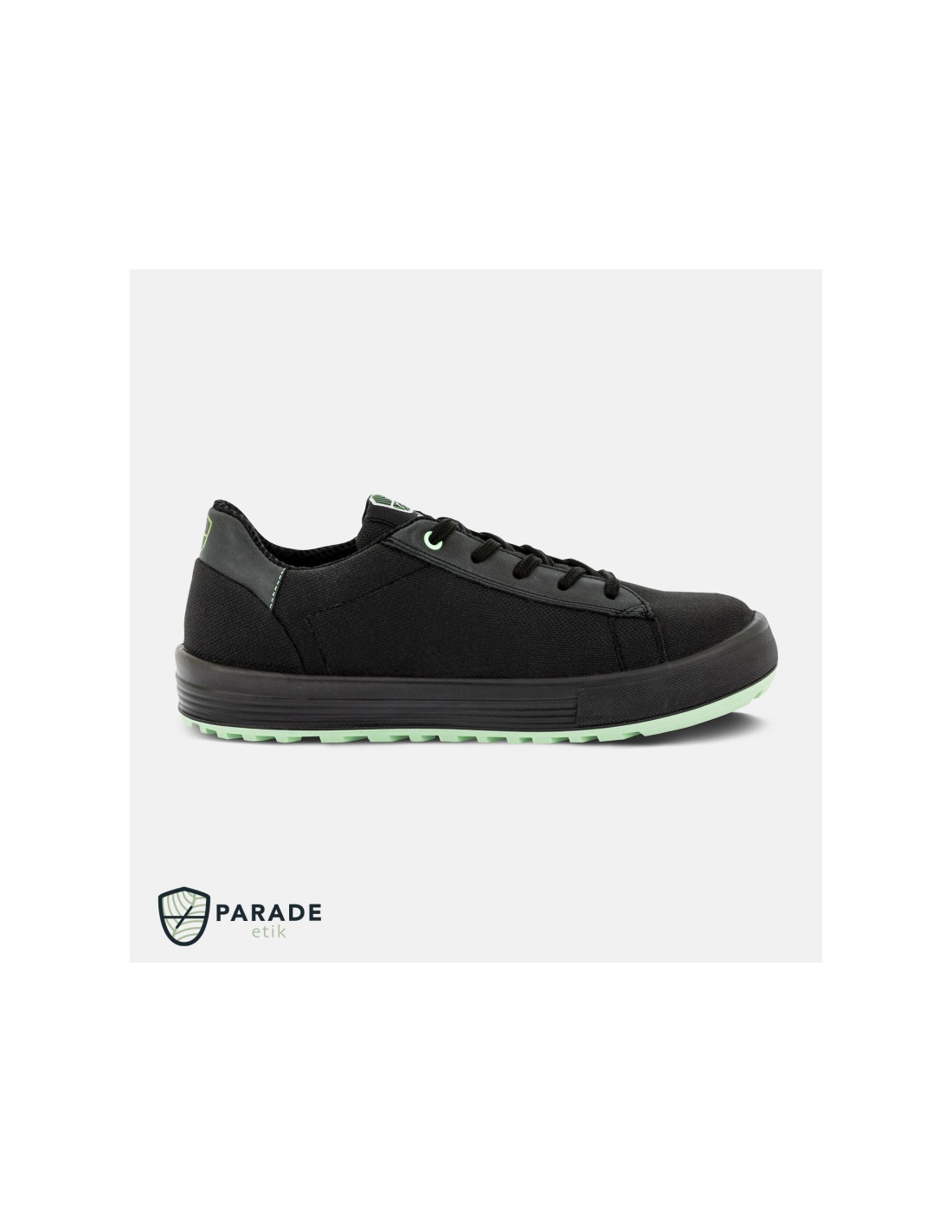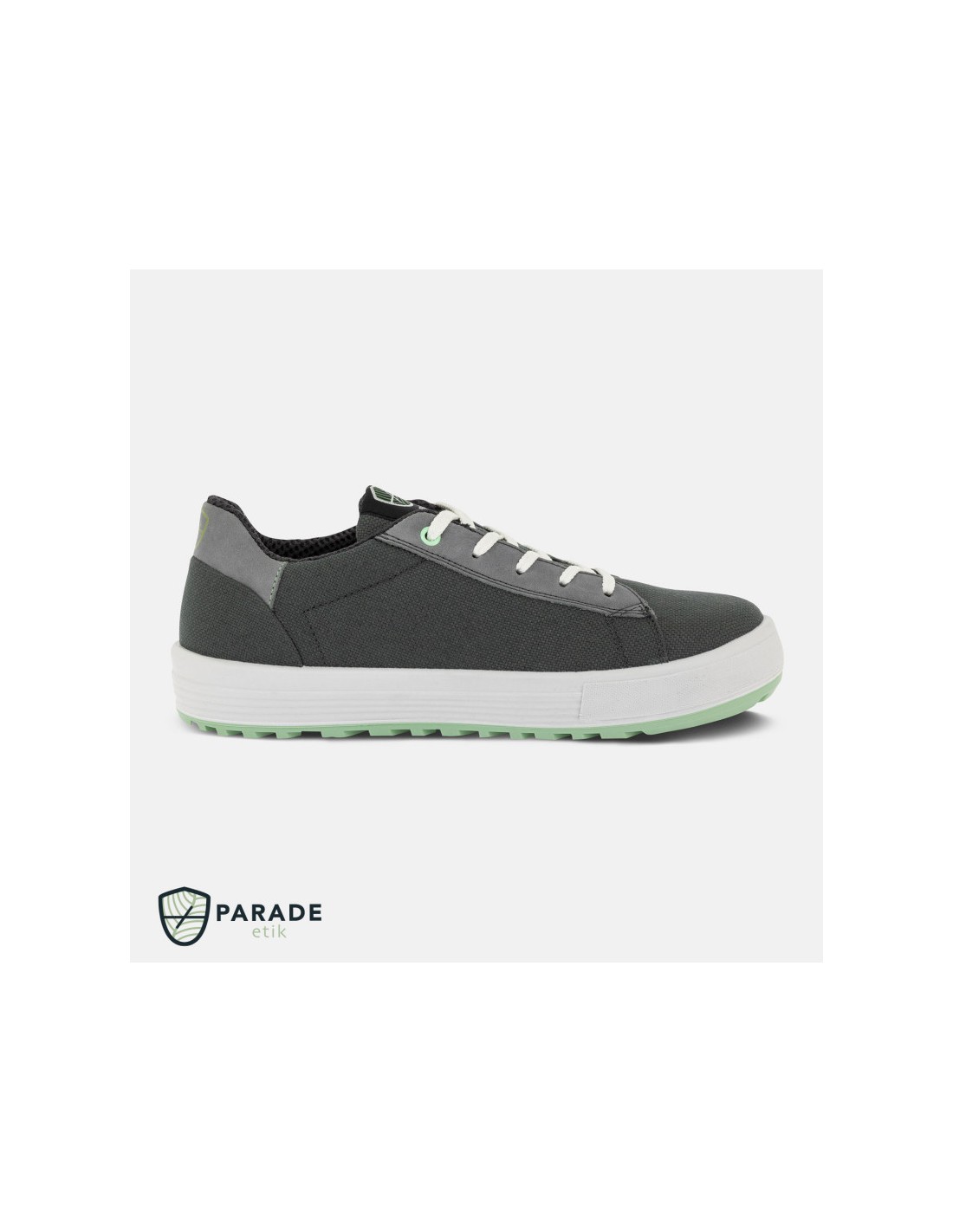 Chaussures de sécurité basses signées Parade avec tige en toile avec inserts en cuir embout en acier et insert anti perforation non métallique semelle en polyuréthane double densité semelle intérieure en mousse EVA amovible. Normes S1P SRC.