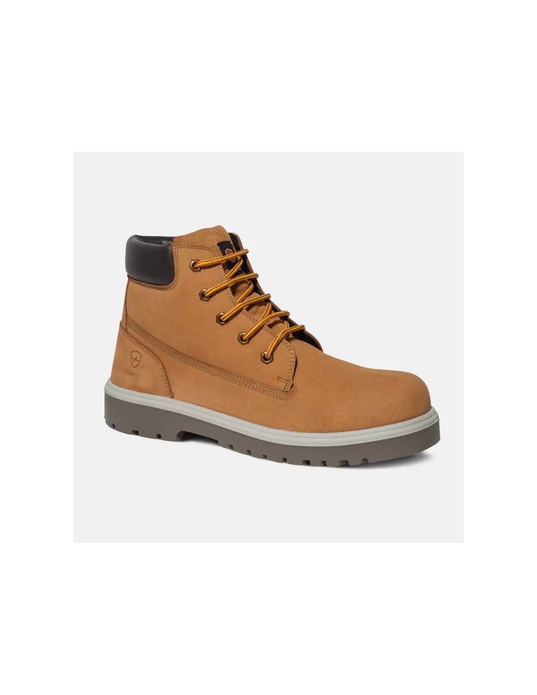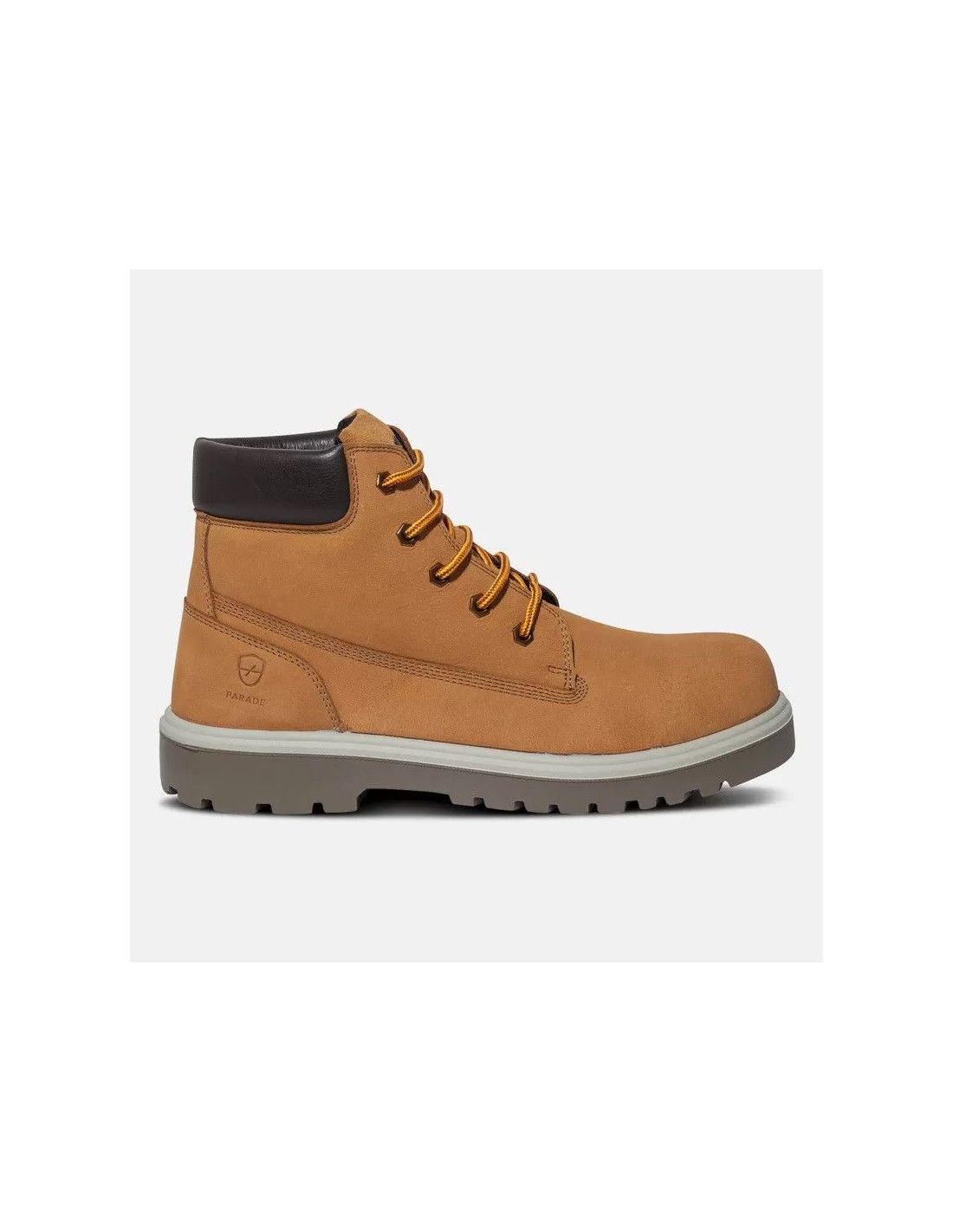 Chaussures de sécurité hautes signées Parade dotées d’une tige en cuir nubuck d’un embout en polycarbonate et d’un insert anti-perforation non métallique avec semelle en polyuréthane à double densité. Normes S3 SRC