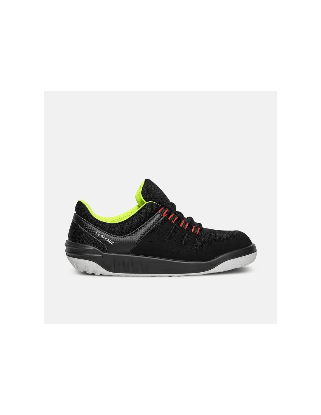 Chaussures de sécurité basses Jeinou signées Parade, dotées d’une tige en microfibre, embout en acier et insert antiperforation non métallique. Semelle en polyuréthane double densité, doublure en maille 3D, semelle intérieure antimycotique. Normes : S1P SRC
