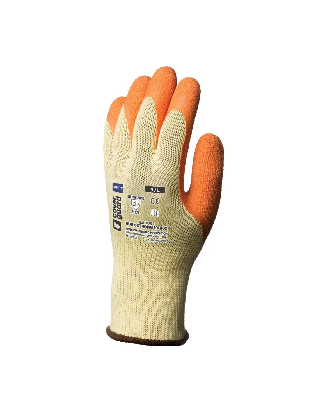 Le gant Eurostrong 1LACO de Coverguard est un équipement de protection individuelle conçu pour la maintenance générale et lourde dans des environnements humides. Sa structure est composée d’une maille sans coutures en polyester et élasthanne de calibre dix, garantissant flexibilité et excellent confort grâce à l’arrière respirant. Le produit présente un revêtement palmaire en latex avec finition adhésive qui recouvre entièrement le pouce, offrant une protection renforcée et une prise exceptionnelle sur surfaces glissantes. Ce modèle offre le plus haut niveau de résistance à la déchirure selon la norme EN388 et est conforme aux standards européens pour la protection contre les risques mécaniques. Il est particulièrement adapté à des secteurs tels que le bâtiment, les infrastructures, la gestion des déchets, la transformation du verre et le jardinage professionnel. La forme ergonomique et le poignet élastique en maille assurent un ajustement stable lors de la manipulation d’objets lourds ou de matériaux de construction. Le gant représente une solution synthétique polyvalente alliant haute résistance et sensibilité tactile pour un usage professionnel prolongé. L’emballage de vente est constitué d’un sachet individuel suspendable qui facilite l’exposition et le stockage.