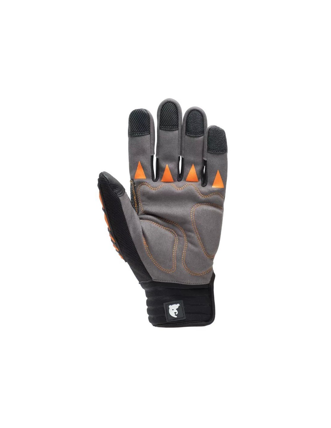 composition : Paume en tissu synthétique gris, dos en polyester gris avec insert TPR anti-choc ; zone de renfort pour le pouce et l’index ; paume renforcée ; index, majeur et pouce avec Grip PU tactile/écran, poignet en néoprène avec fermeture velcro. Paume en tissu synthétique.
