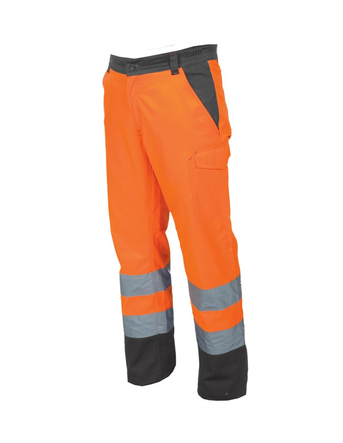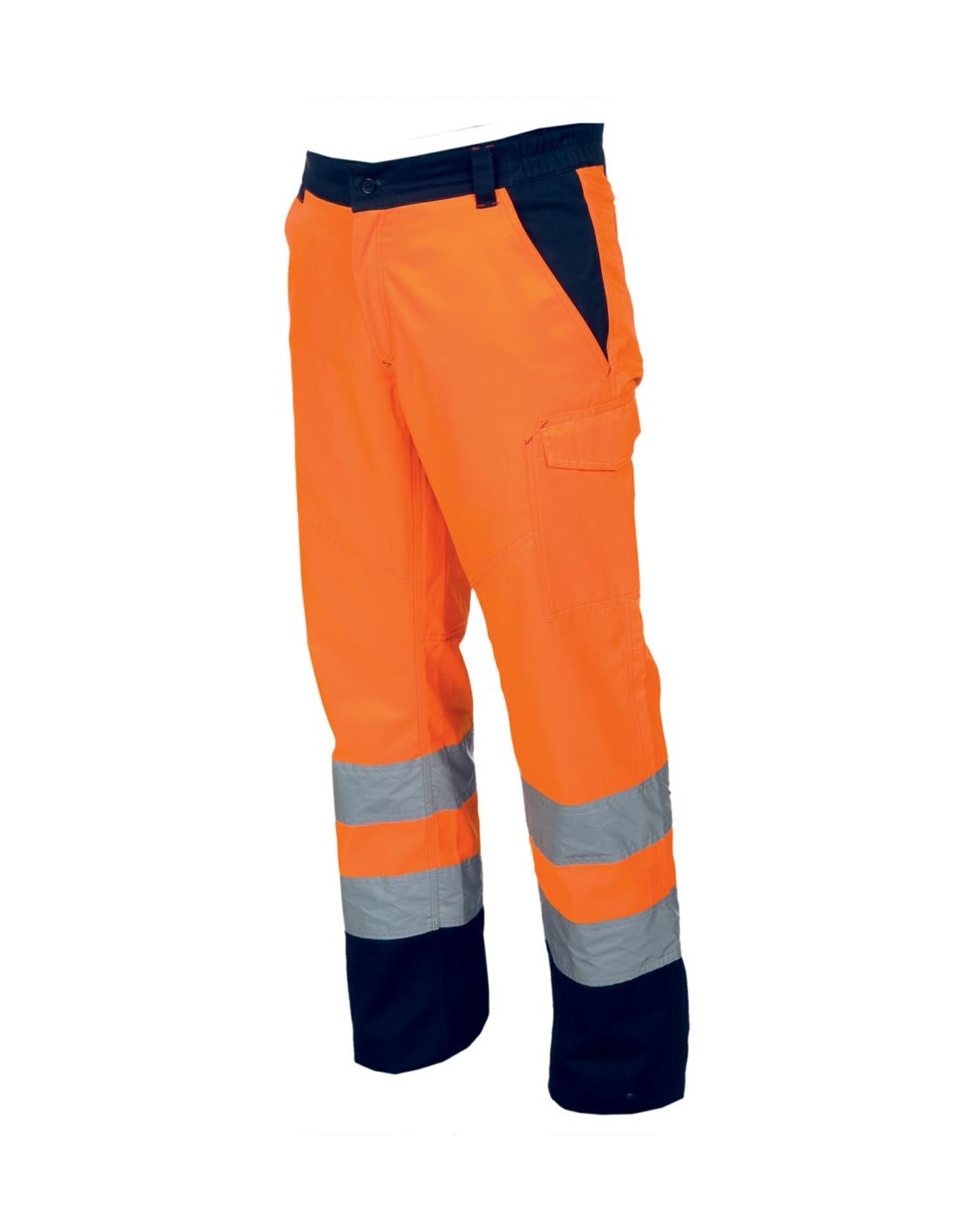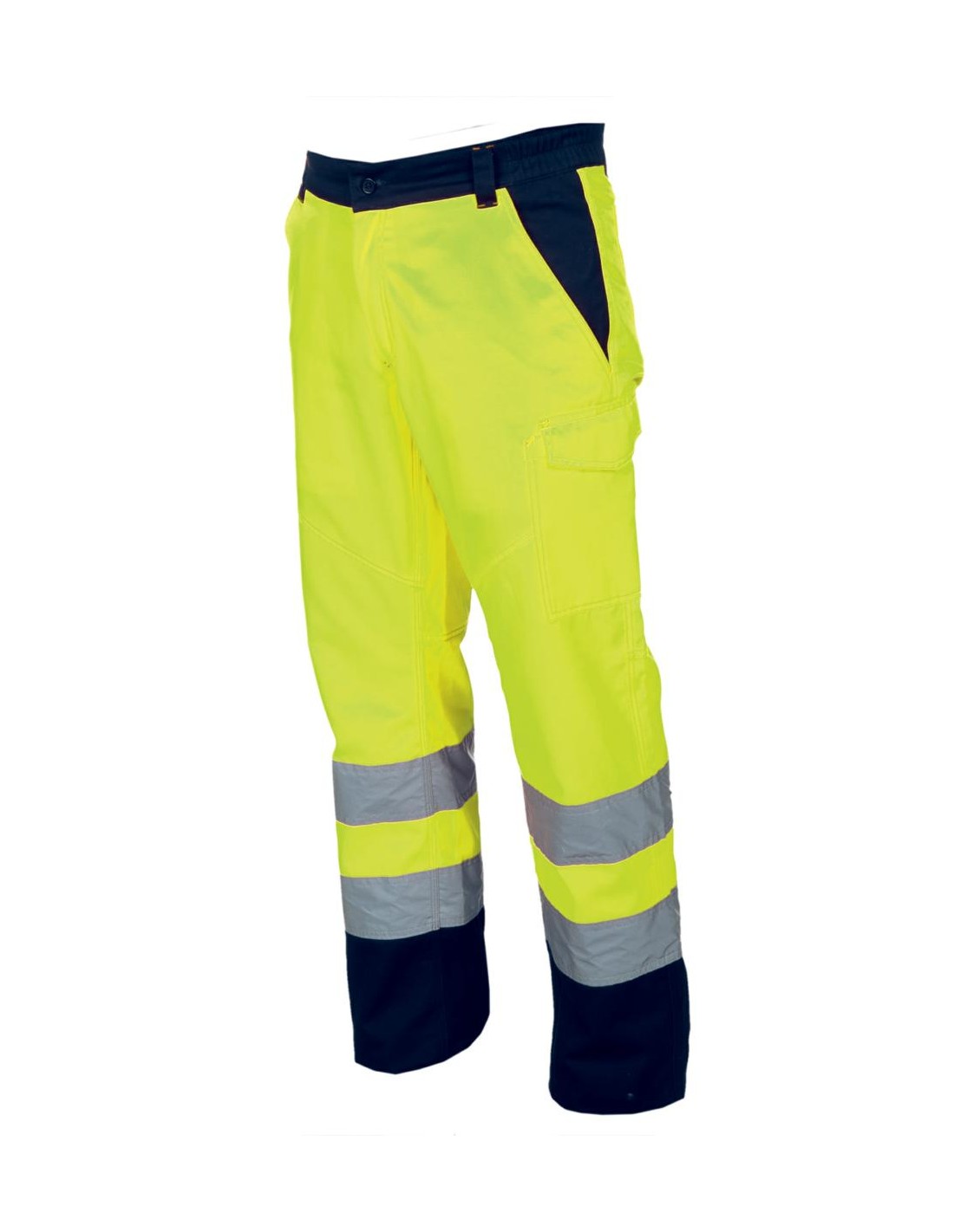 Il s'agit d'un modèle haute visibilité en coton et en polyester, idéal pour la saison hivernale. Il est équipé d'élastiques latéraux et de passants à la taille, d'une fermeture à glissière et d'un bouton en plastique, de bandes réfléchissantes, de deux poches avant de style classique, d'une poche latérale "look-system", d'un porte-mètre, de deux poches arrière, l'une ouverte et l'autre avec rabat et fermeture velcro, de coutures contrastées, et d'une triple couture à l'entrejambe et à l'intérieur des jambes.