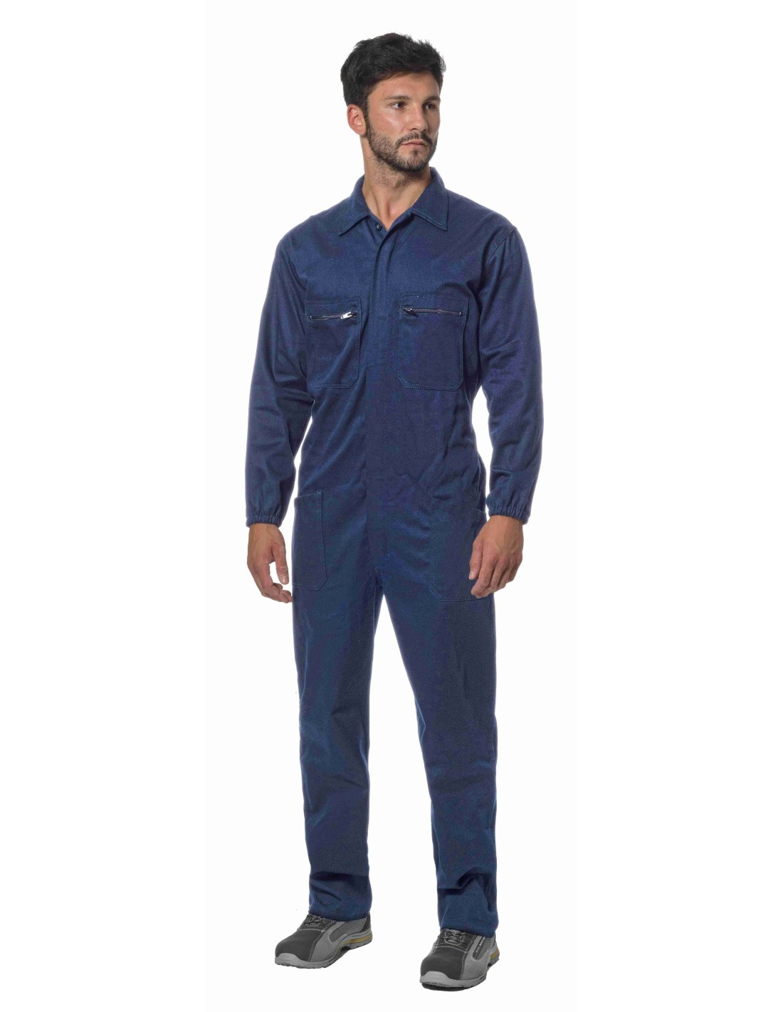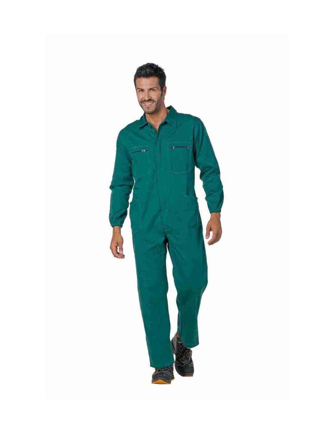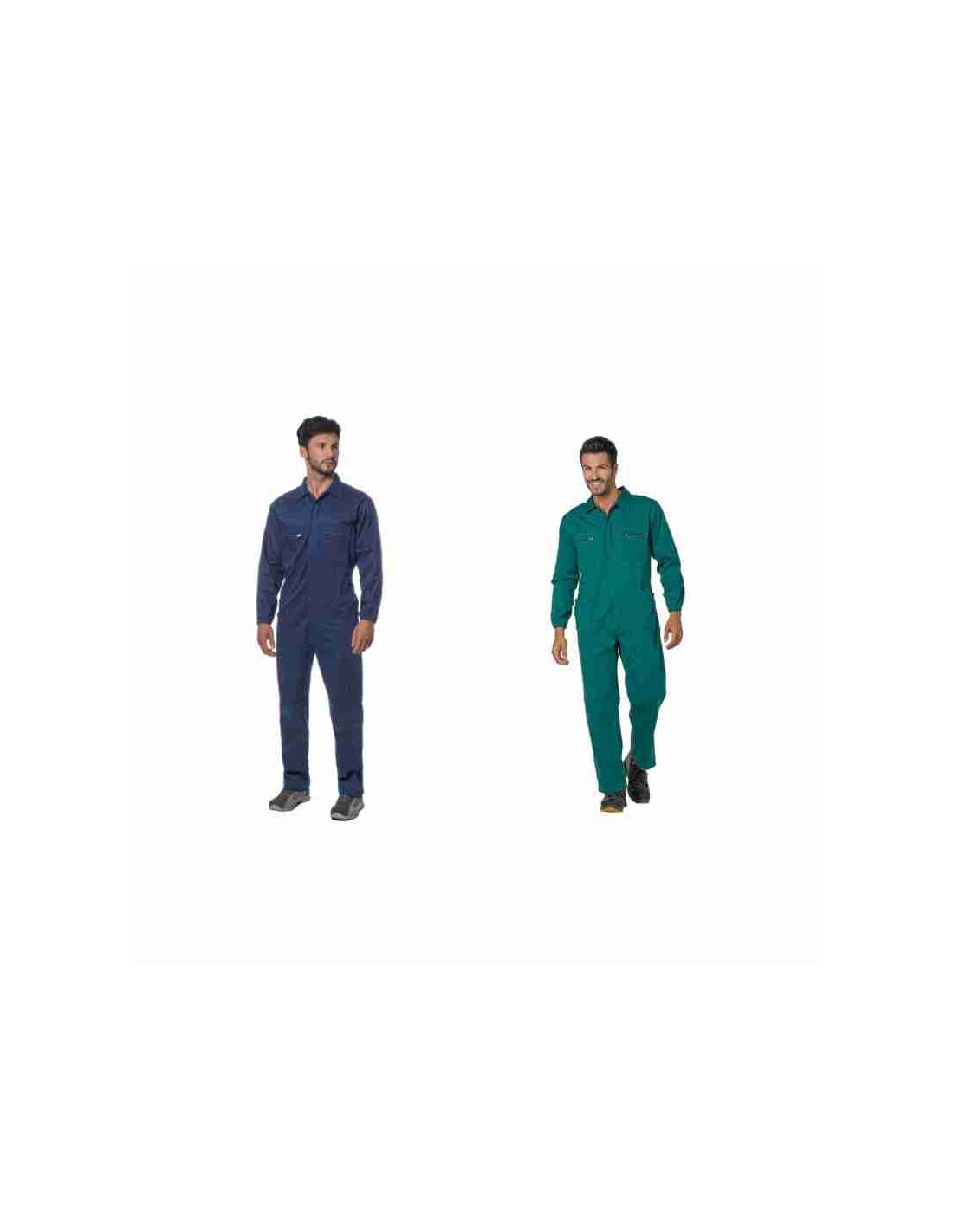 Combinaisons de travail multipoches 100 % coton signées Logica, dotées de deux poches poitrine avec fermeture éclair, deux poches ouvertes à la taille et un porte-mètre latéral, avec une fermeture frontale à glissière couverte, col chemise, taille élastique, poignets élastiqués et doubles coutures aux points de tension. Idéales pour les travaux industriels et mécaniques.