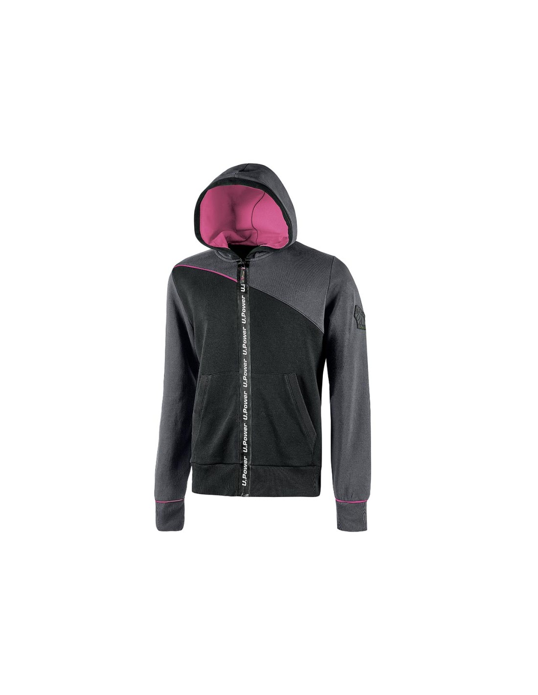 La capuche est réglable selon les besoins, la fermeture éclair centrale est imperméable, avec le logo Upower imprimé, ce qui donne au sweat un caractère sportif ;les poignets et le bas sont finement côtelés élastiques, les poches en biais sont larges et confortables.